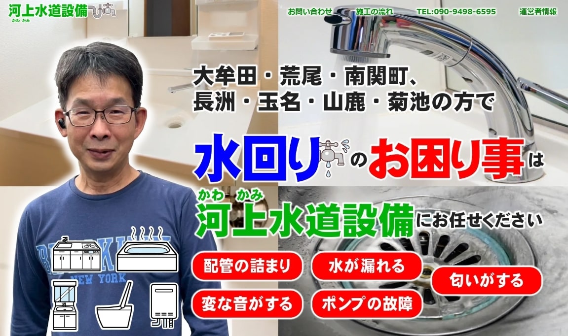 大牟田・みやま市・荒尾・水道つまり等水回りトラブルは河上水道設備へお任せください